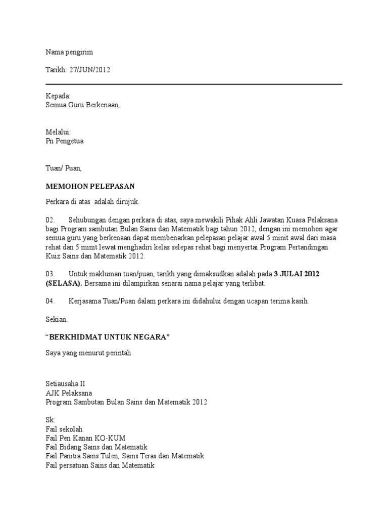 Contoh Surat Memohon Pelepasan Pdf